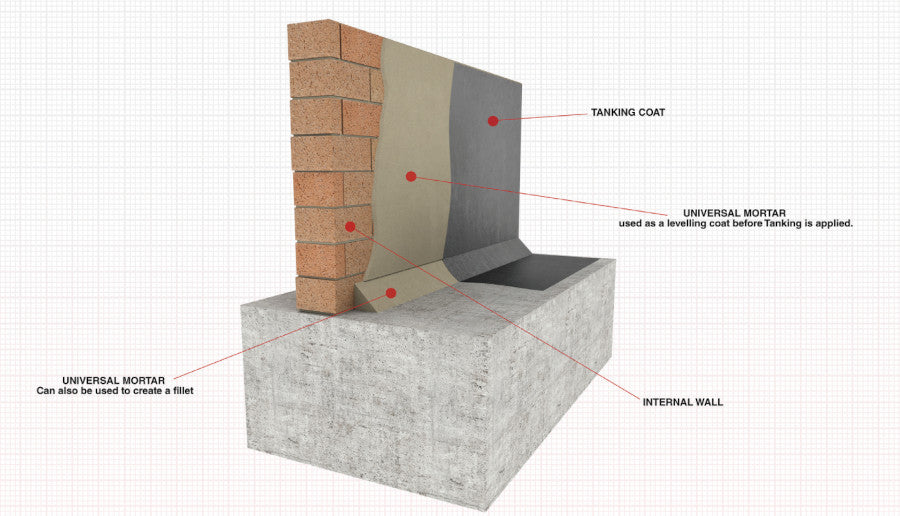 Tanking slurry is ideal for use as part of a damp-proofing course (DPC) and is an